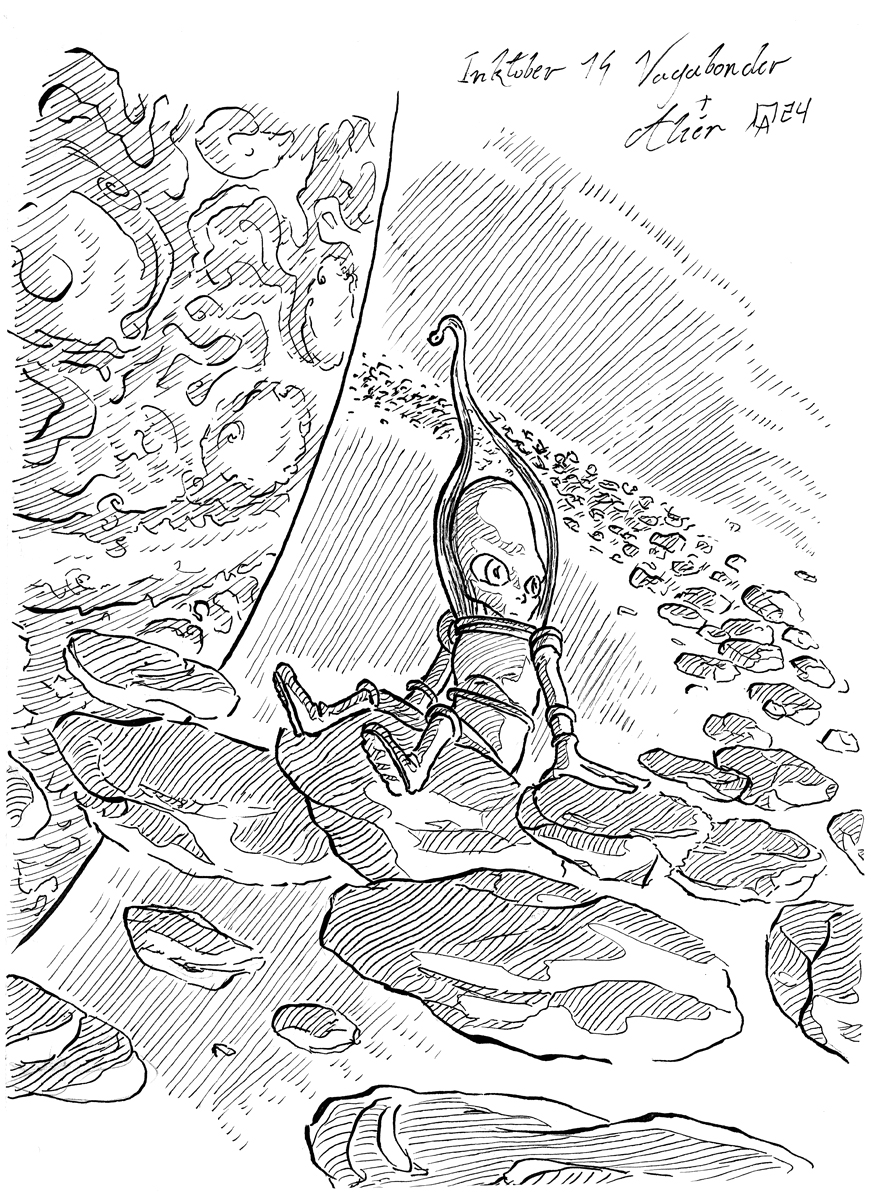2024 Résultat du Inktober de 2024. J'aurais pas tout fait, mais ce que j'ai fait, je l'ai fait en direct devant vos yeux ébahis. C'était l'occasion de tester Twitch. C'est assez chouette, je pense donc poursuivre les lives avec des concepts similaires !