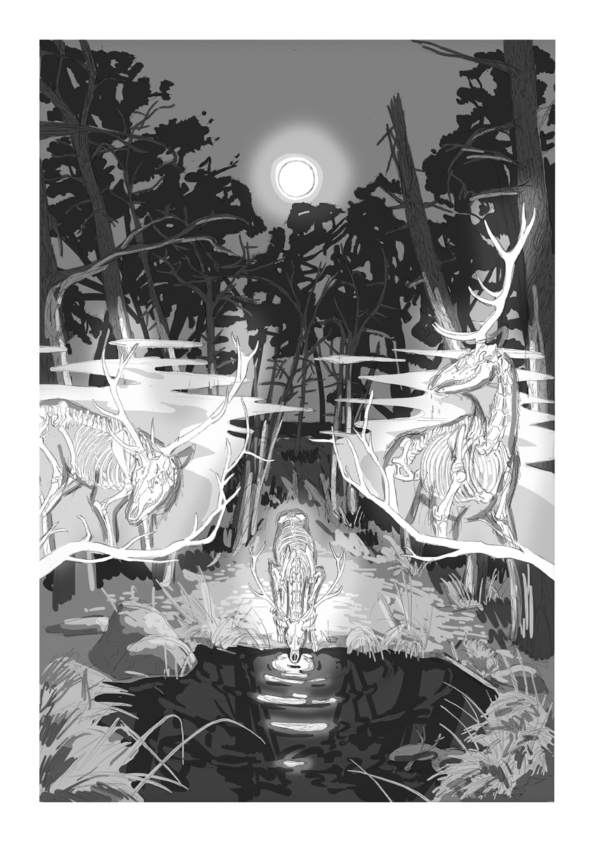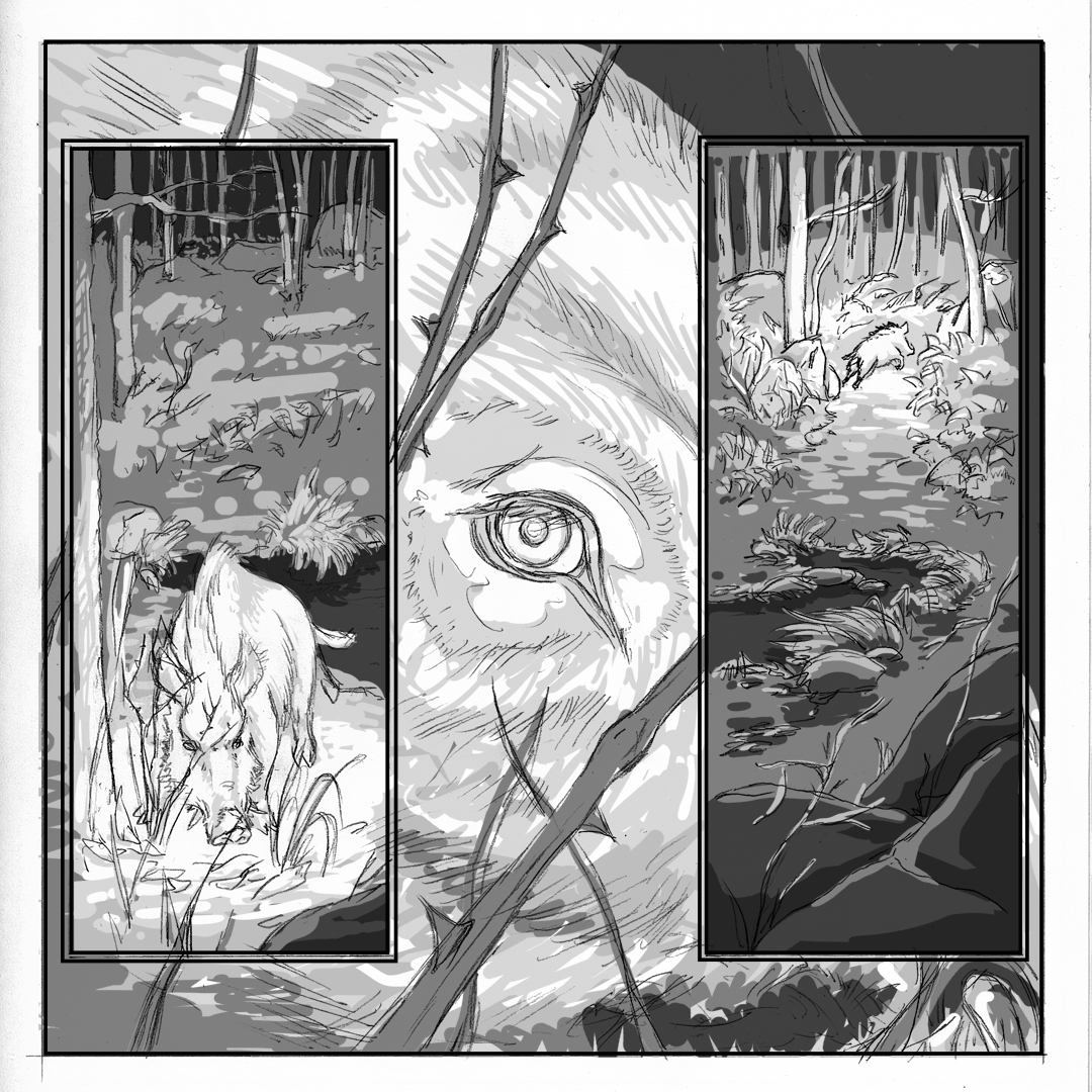 Test of “fantasy haiku comic”, along with the drawing steps.