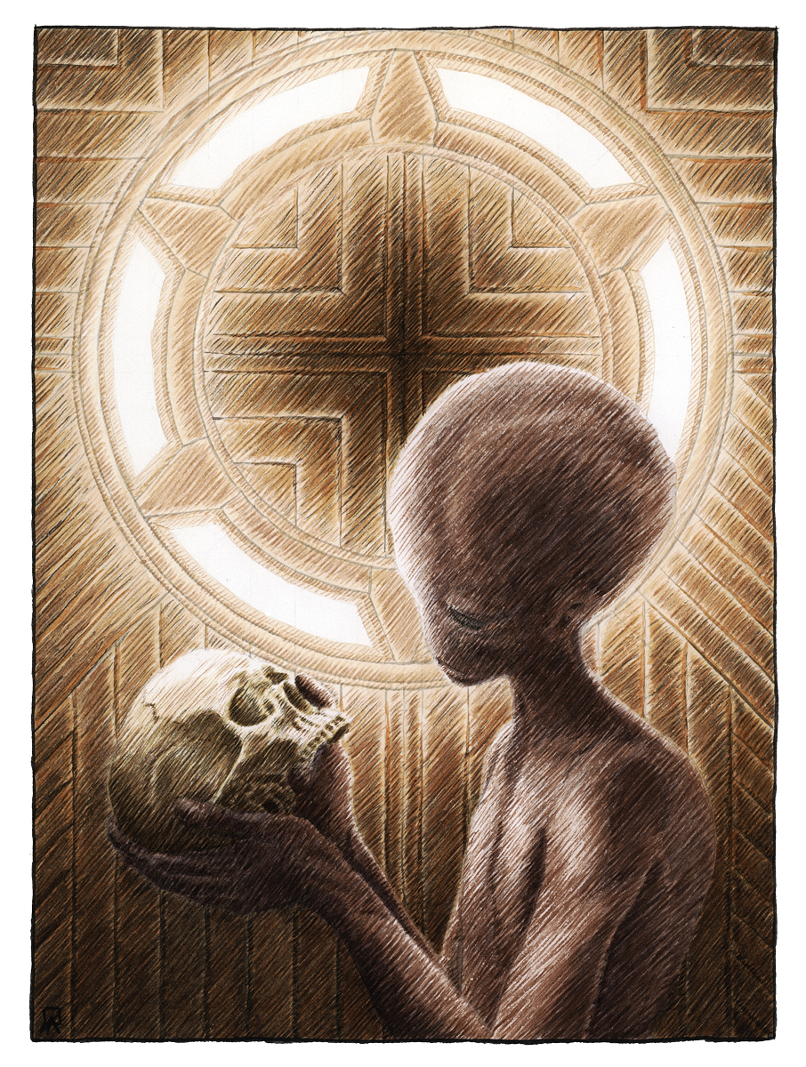 Created as a test piece for a watercolor artwork, this illustration became the cover of Galaxies SF No. 92.