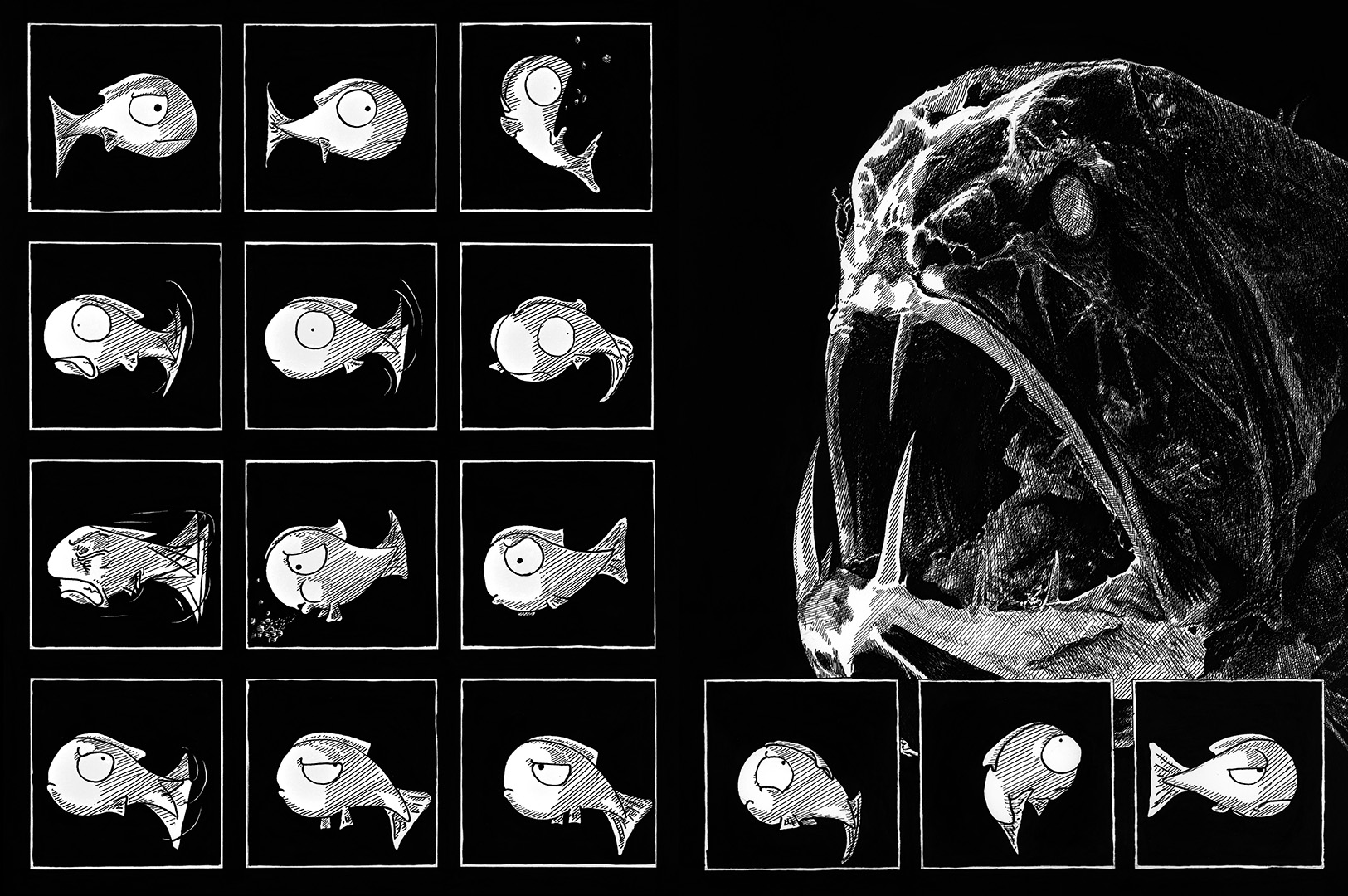 In the "Abysses" comics, I experimented with different sequential reading codes.