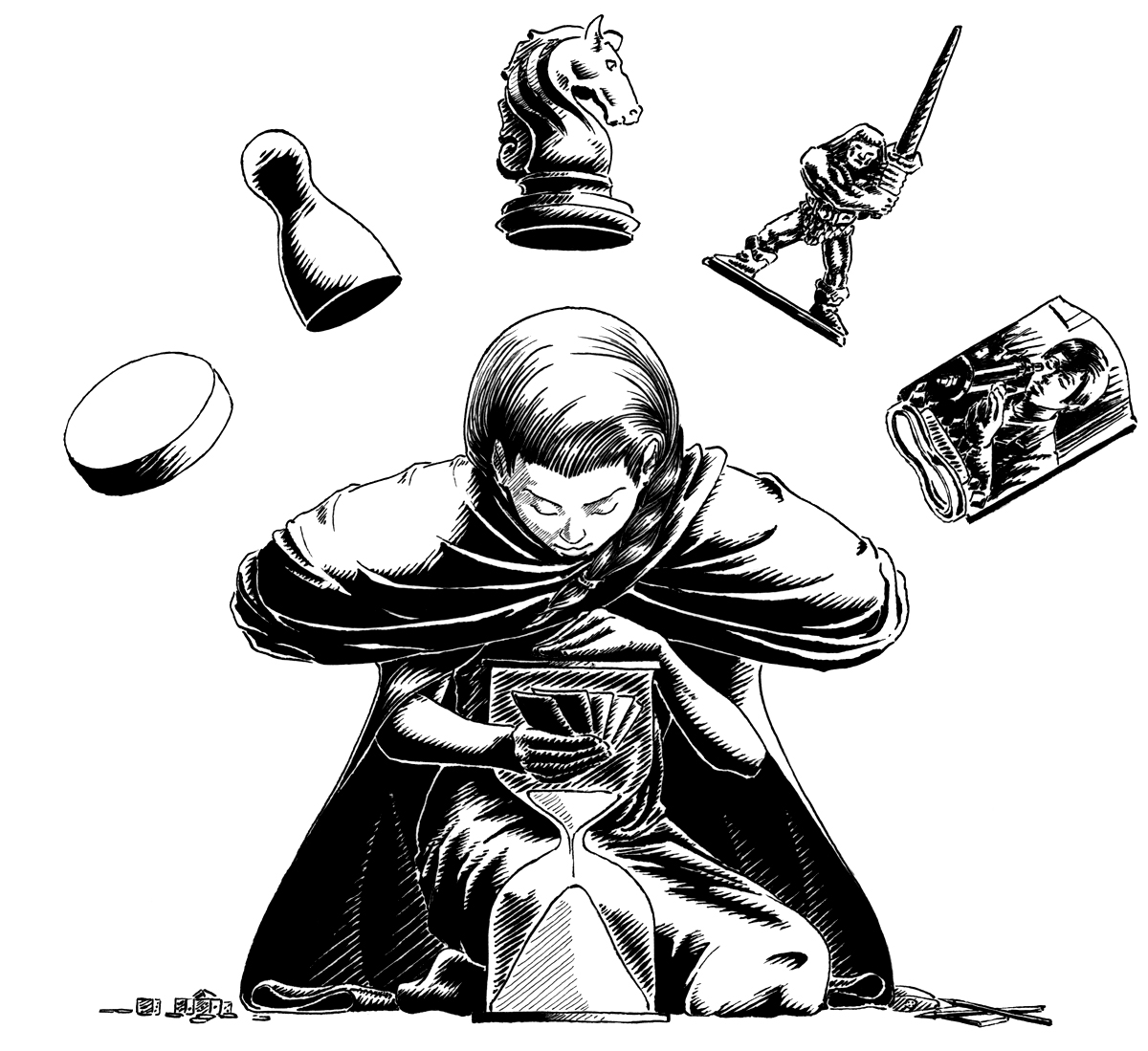 It includes an event poster and a series of logos representing the association's four areas of focus: board games, role-playing games, video games, and figurines.