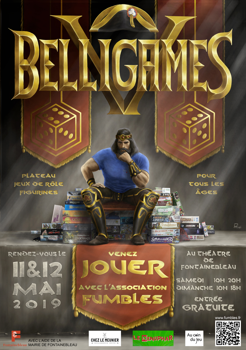 Elle comporte une affiche événementielle et une série de logos représentant les quatre pôles de l'association: jeu de société, jeu de rôle, jeu vidéo et figurines.
