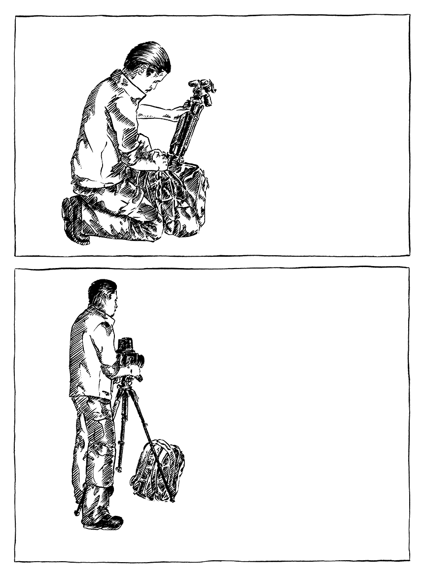You can see me in an empty space, dressed in “urbex photography” gear, initiating the beginning of something by tracing a horizon line.