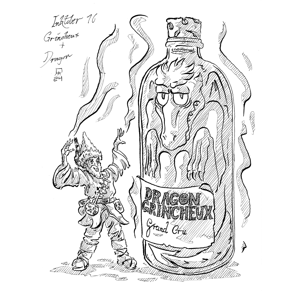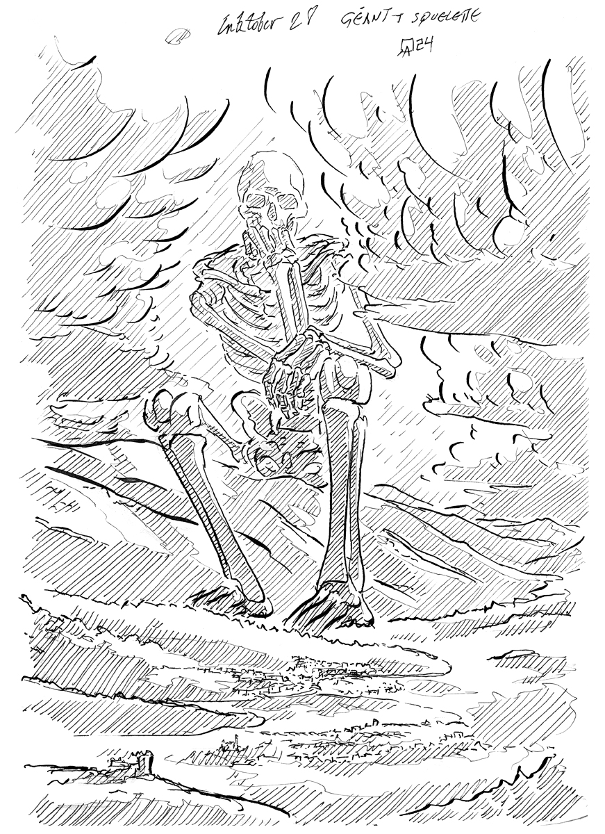 2024 Résultat du Inktober de 2024. J'aurais pas tout fait, mais ce que j'ai fait, je l'ai fait en direct devant vos yeux ébahis. C'était l'occasion de tester Twitch. C'est assez chouette, je pense donc poursuivre les lives avec des concepts similaires !